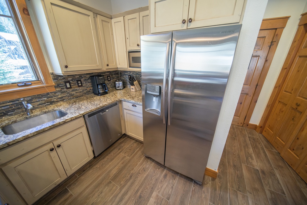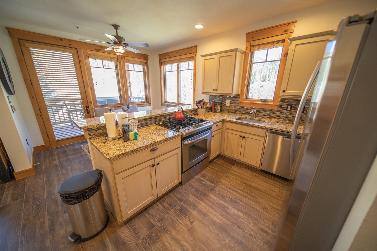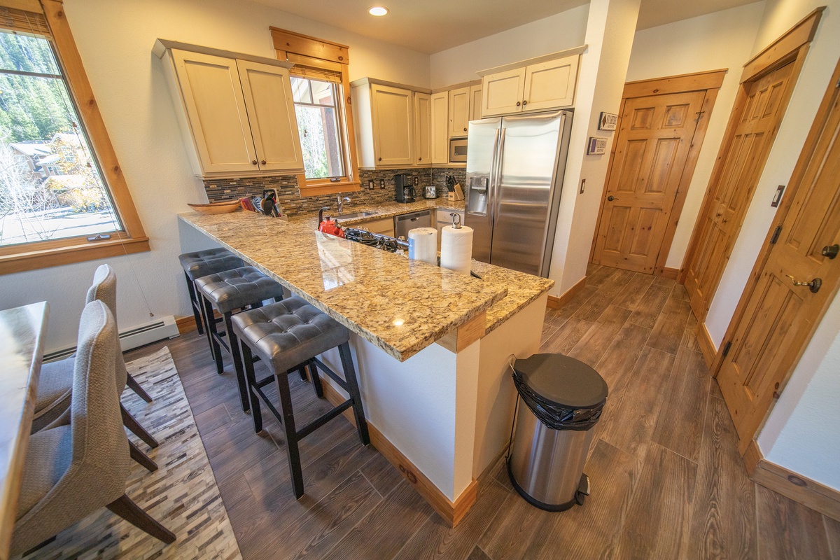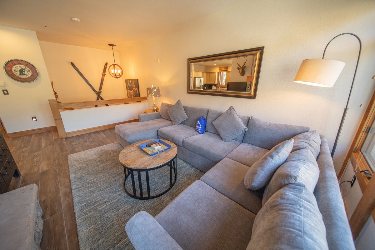 The large windows at Settlers Creek 6536 welcome in the Colorado sunshine, brightening the entire Main floor. The warm, tasteful decor and natural lighting create a cozy yet sophisticated space, ideal for unwinding after a day of adventure. Relax by the fireplace, enjoying the tranquil ambiance and mountain scenery. With a fully equipped kitchen, dining area, and ample seating, you can gather for memorable meals or enjoy a good board game with family and friends.