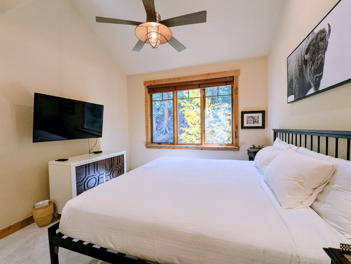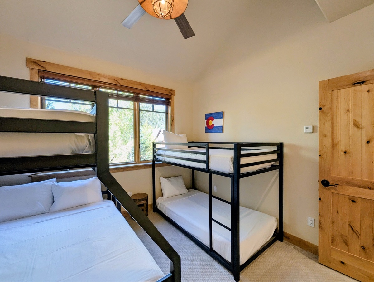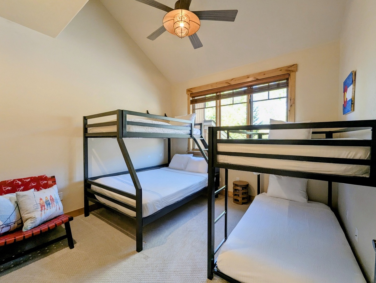Each of the three bedrooms is thoughtfully designed to provide privacy and comfort. Large windows bring in natural light and mountain scenery, while plenty of storage space allows you to settle in for your stay. With three full bathrooms, mornings and evenings are stress-free, giving everyone the space they need to get ready for a big day on the slopes or a night out in River Run Village.