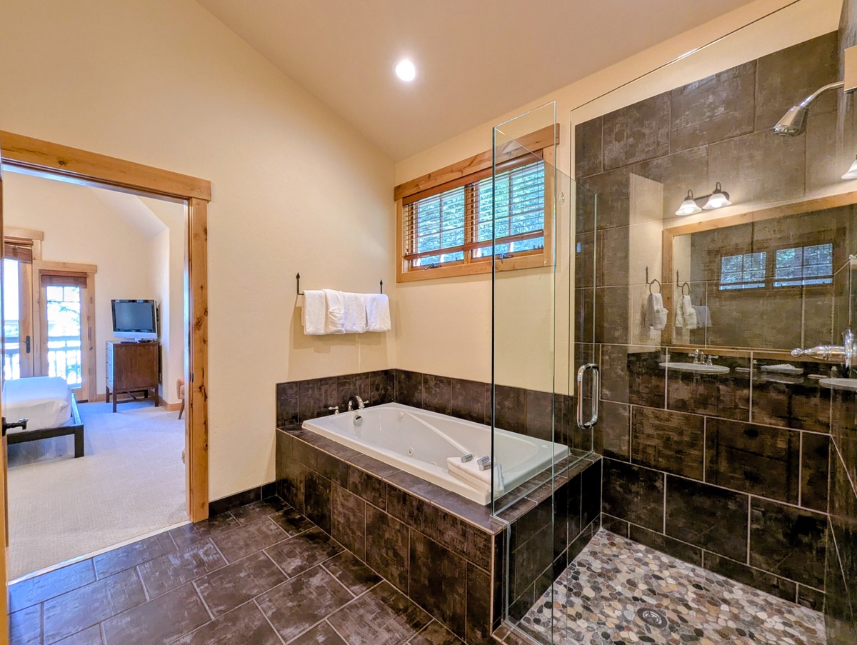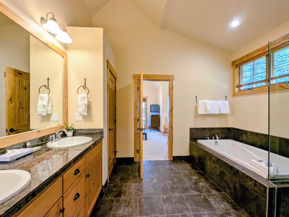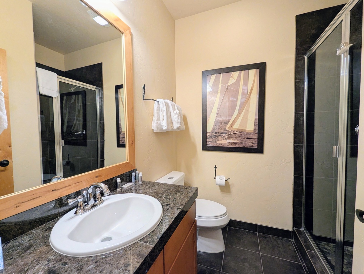 Each of the three bedrooms is thoughtfully designed to provide privacy and comfort. Large windows bring in natural light and mountain scenery, while plenty of storage space allows you to settle in for your stay. With three full bathrooms, mornings and evenings are stress-free, giving everyone the space they need to get ready for a big day on the slopes or a night out in River Run Village.