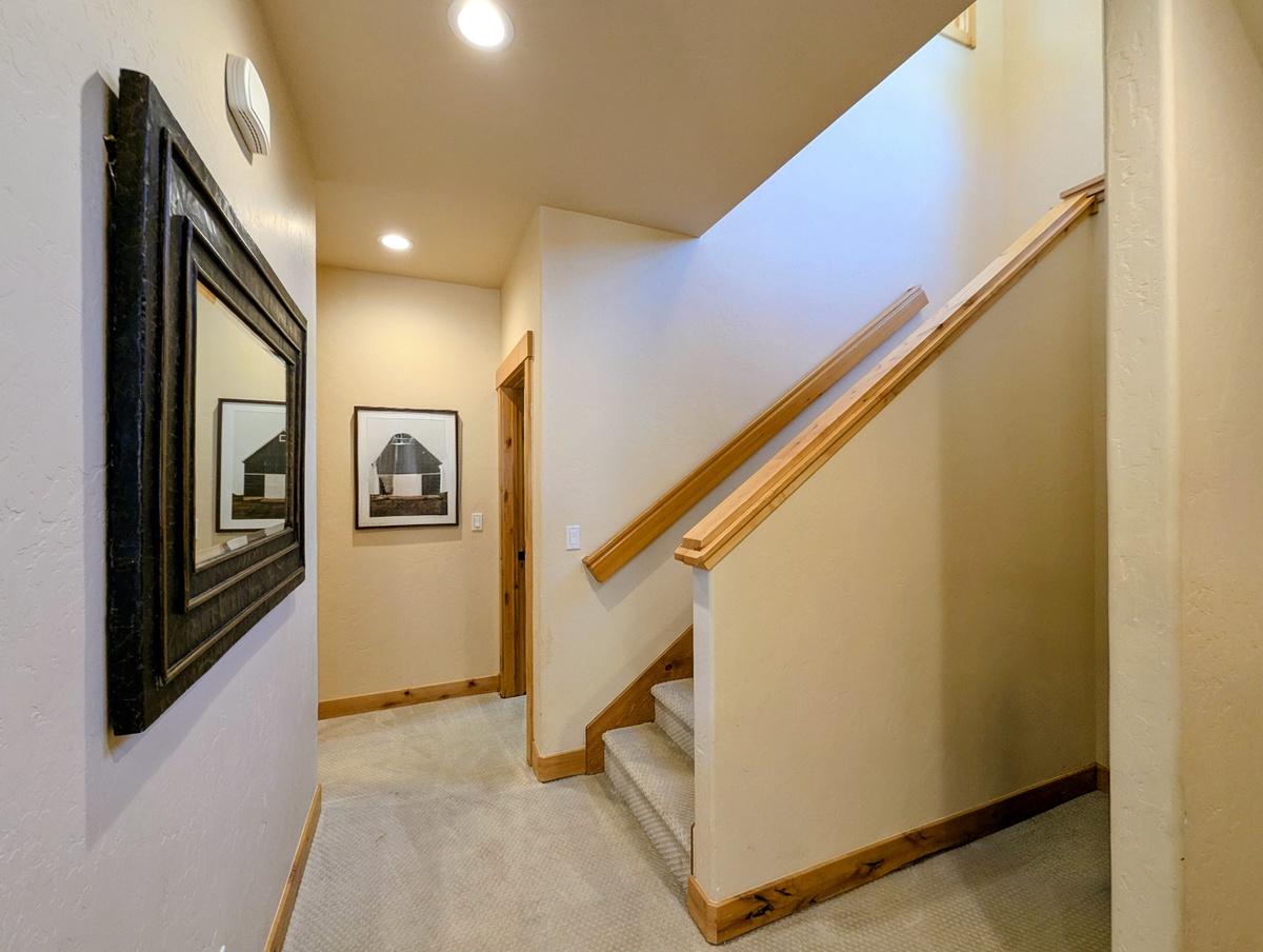 One of the highlights of this townhome is its outdoor space. Step out onto the private deck to take in the crisp mountain air, grill up a meal, or simply enjoy the peaceful forest setting. In winter, it’s a quiet place to watch the snow fall, and in summer, it becomes a serene spot for stargazing or sipping coffee as the sun rises. The home also includes convenient features like a washer and dryer and a private garage, adding extra comfort to your mountain getaway.