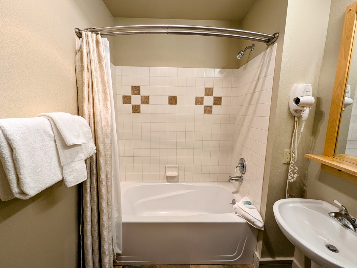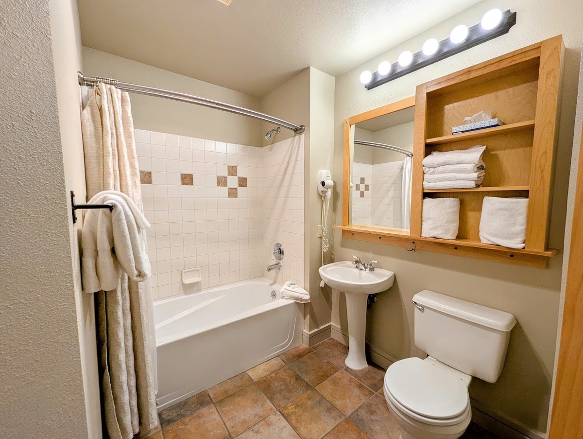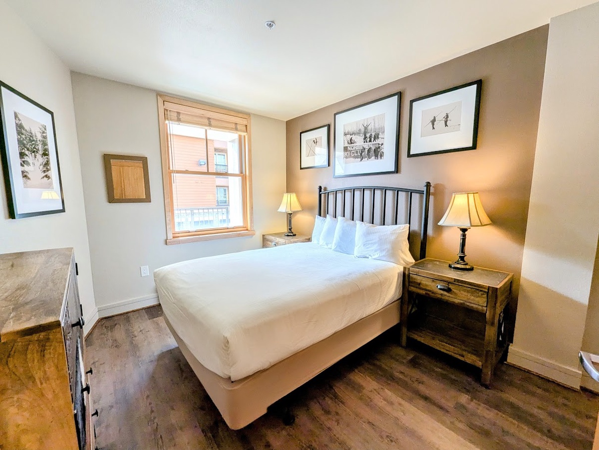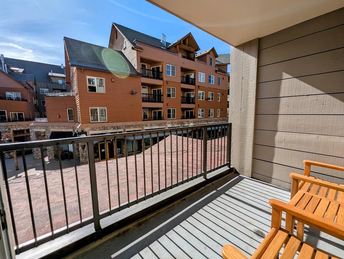 The condo's outdoor balcony extends the living space, providing a tranquil spot to breathe in the fresh mountain air, sip a warm beverage, and take in the picturesque views of the surrounding landscape. As the sun sets, immerse yourself in the warm, bubbly bliss of the shared hot tub, the perfect spot to soothe your muscles after a day of mountain adventures.