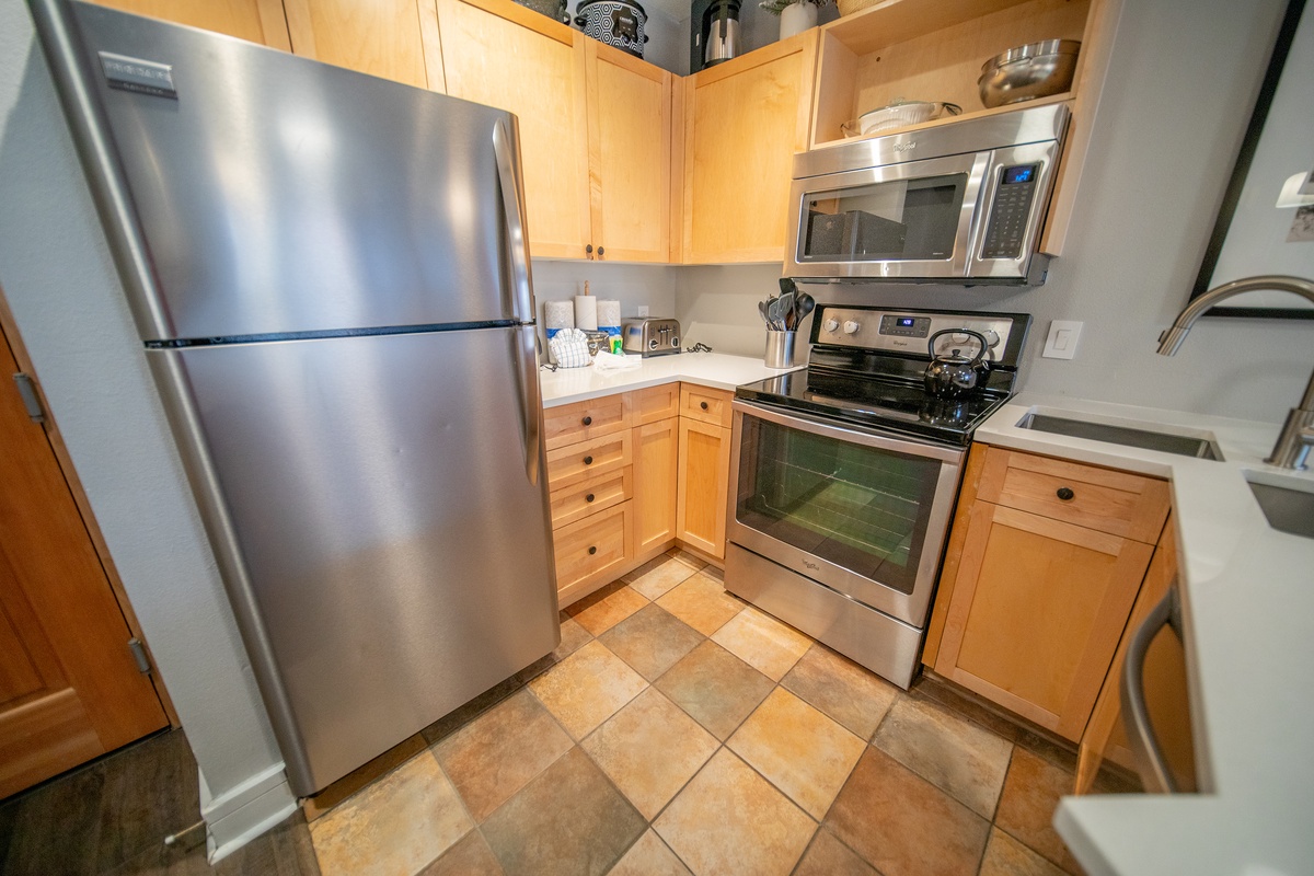 A beautifully appointed kitchen awaits those who love to cook, boasting modern appliances, sleek countertops, and all kitchen utensils. Whether you're preparing a quick breakfast before hitting the slopes or crafting a gourmet meal for a special occasion, this kitchen has everything you need. The breakfast bar comfortably seats four, making mealtime a delightful social experience.