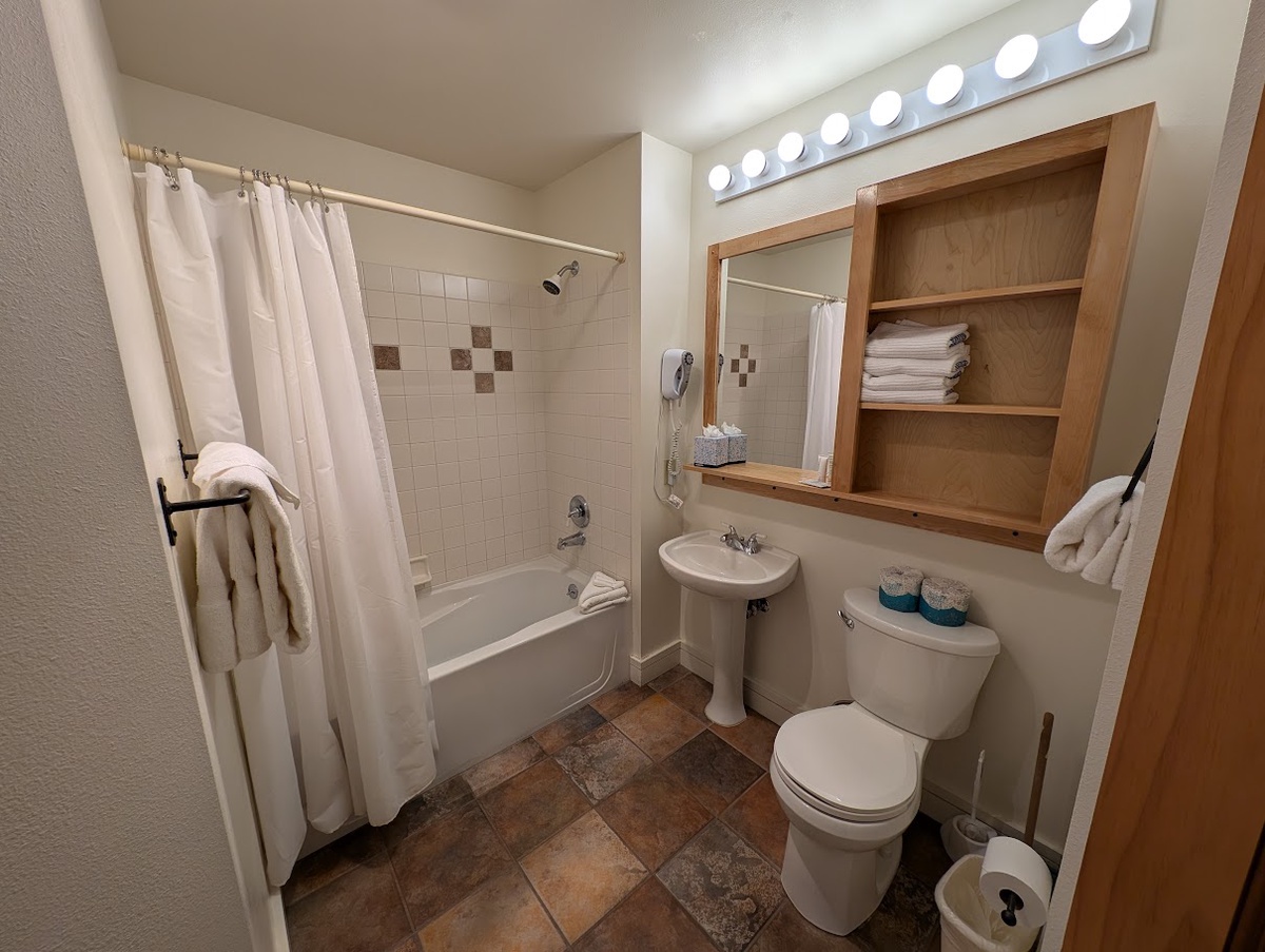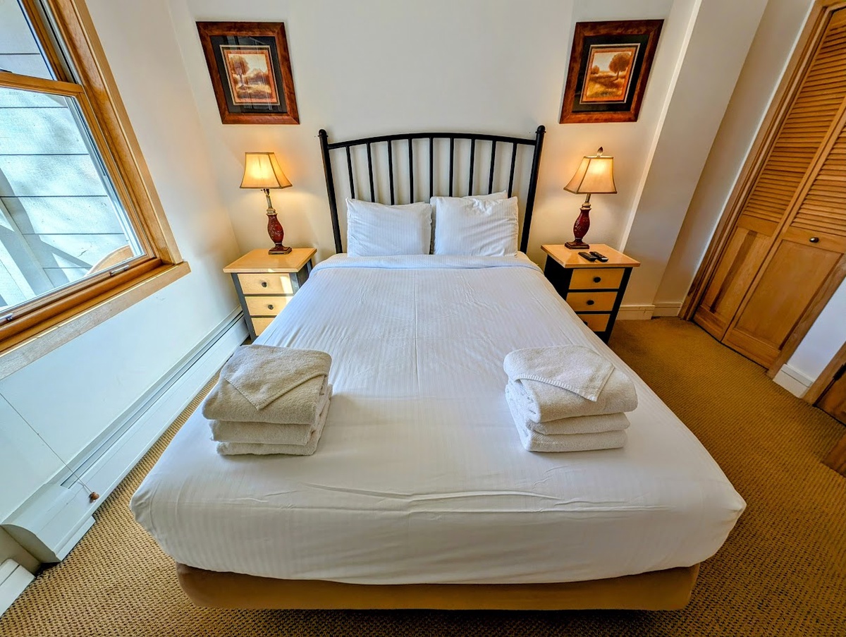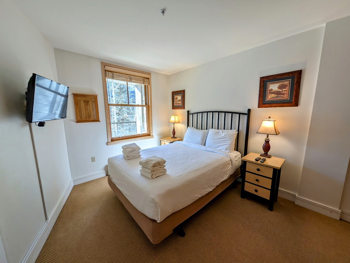 The bedroom, decorated with a touch of rustic elegance, assures a tranquil retreat where you can rest and rejuvenate after a fun-filled day on the slopes. A clean and modern bathroom completes the living spaces, providing the convenience and comfort that every vacationer would appreciate.