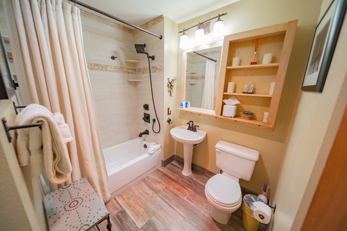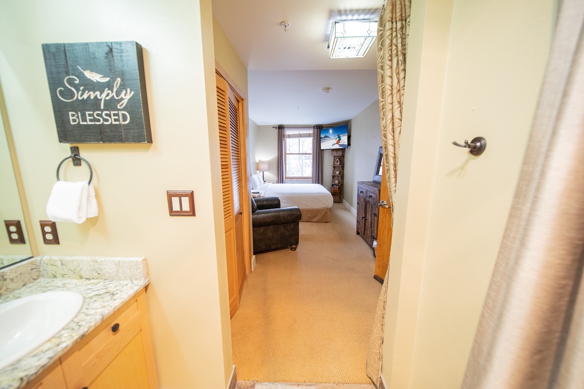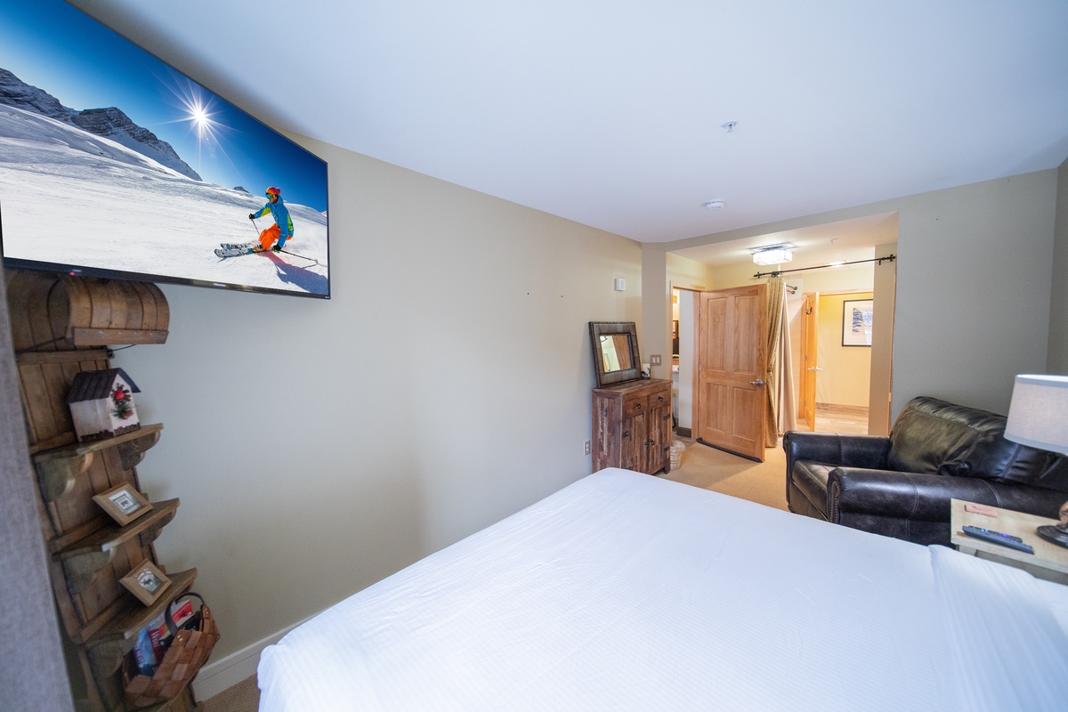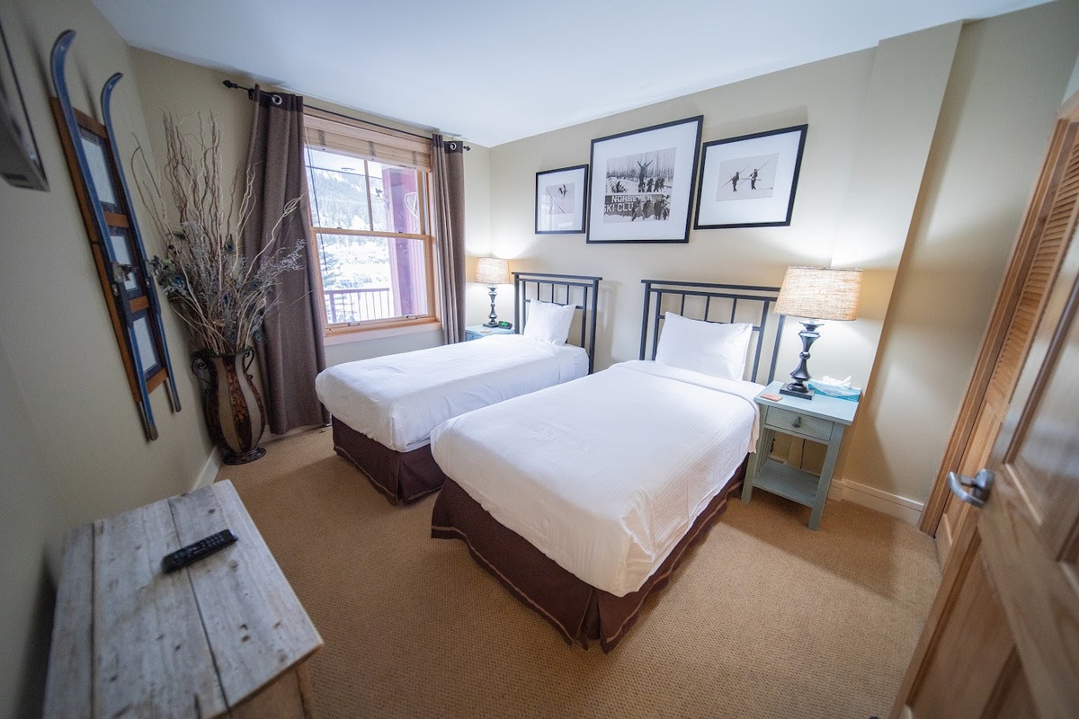 Beyond the living areas, you'll find serene bedrooms, each echoing the condo's emphasis on comfort and relaxation. Both rooms are stylishly decorated and feature ample storage space and large windows, allowing you to wake up to glorious mountain views. The two modern bathrooms enhance your stay with their sparkling clean fixtures and fresh towels, offering the perfect space to refresh after a long day on the slopes.