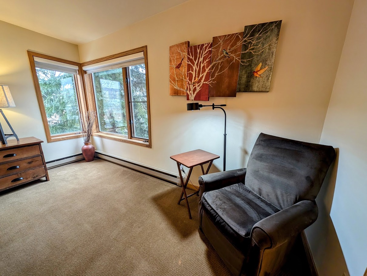 After a day on the slopes, come back to the condo for some rest and relaxation. Take a dip in the shared hot tub or soak your muscles in the sauna. Relax next to the living room fireplace while sipping on a warm beverage, read a book from the collection or watch a movie on the flat-screen TV. Or enjoy a drink on the spacious balcony where you can take in the serene mountain views while feeling refreshed and rejuvenated.