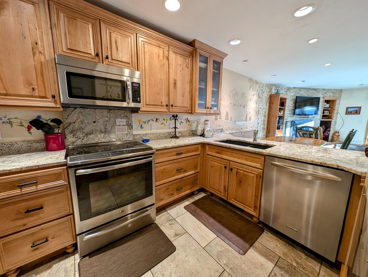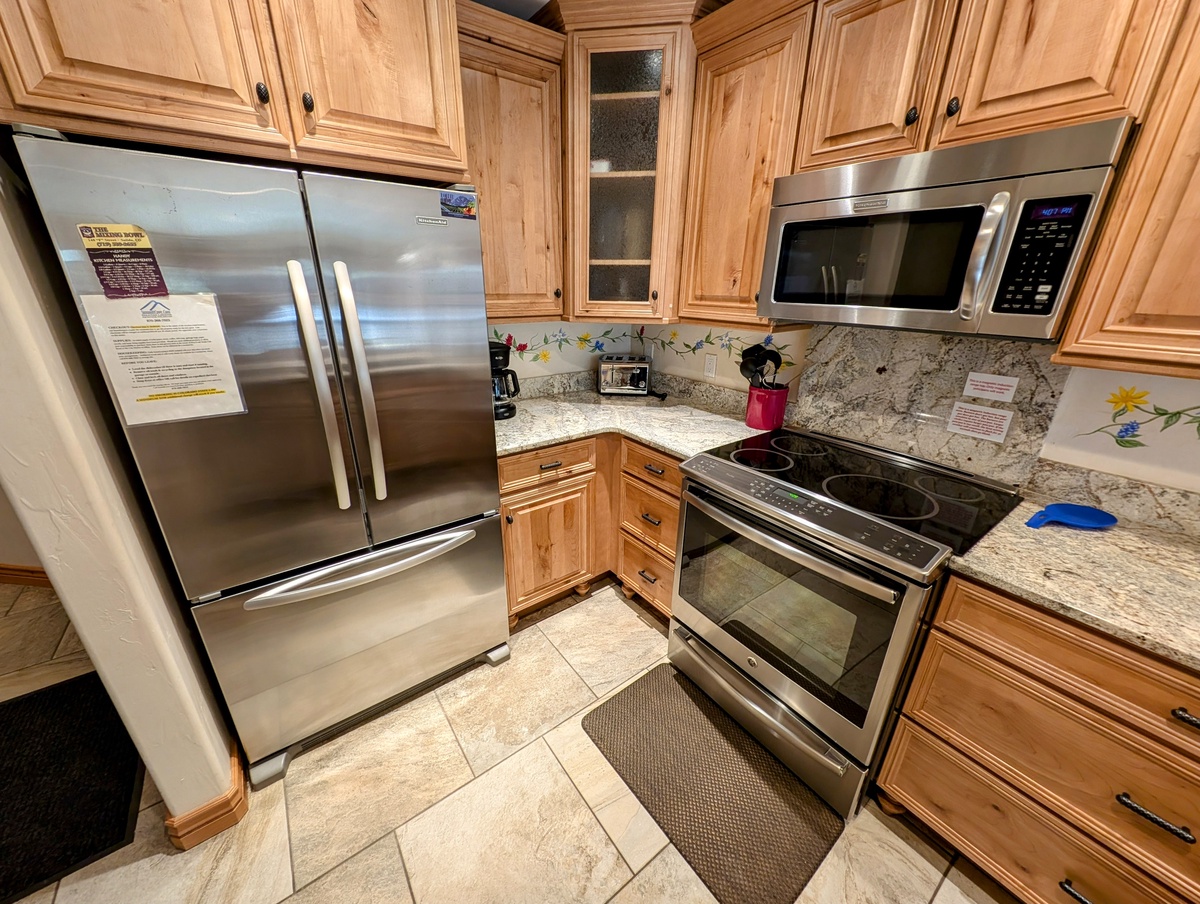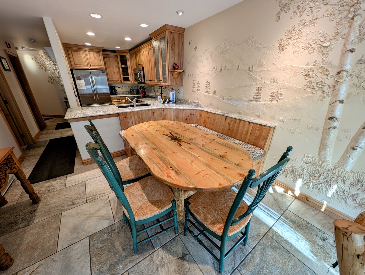 We loved this cozy condo! It had everything we needed for our 3 night ski getaway right before Christmas. The kitchen was well equipped, even with oil and salt and pepper. The living room was cozy and spacious with plenty of seating. An added bonus was the heated floor in the master bath! Awesome! Location was great, very close to the ski area. You can just walk through a path behind the condo and over a cute little bridge to the ski resort. We only did that one day because it is a little bit of a walk with your ski boots on. But it is definitely something to check out as soon as you get there because it is very convenient. I saw many people walking through the path with their ski gear on. This is a great family condo for your trip!