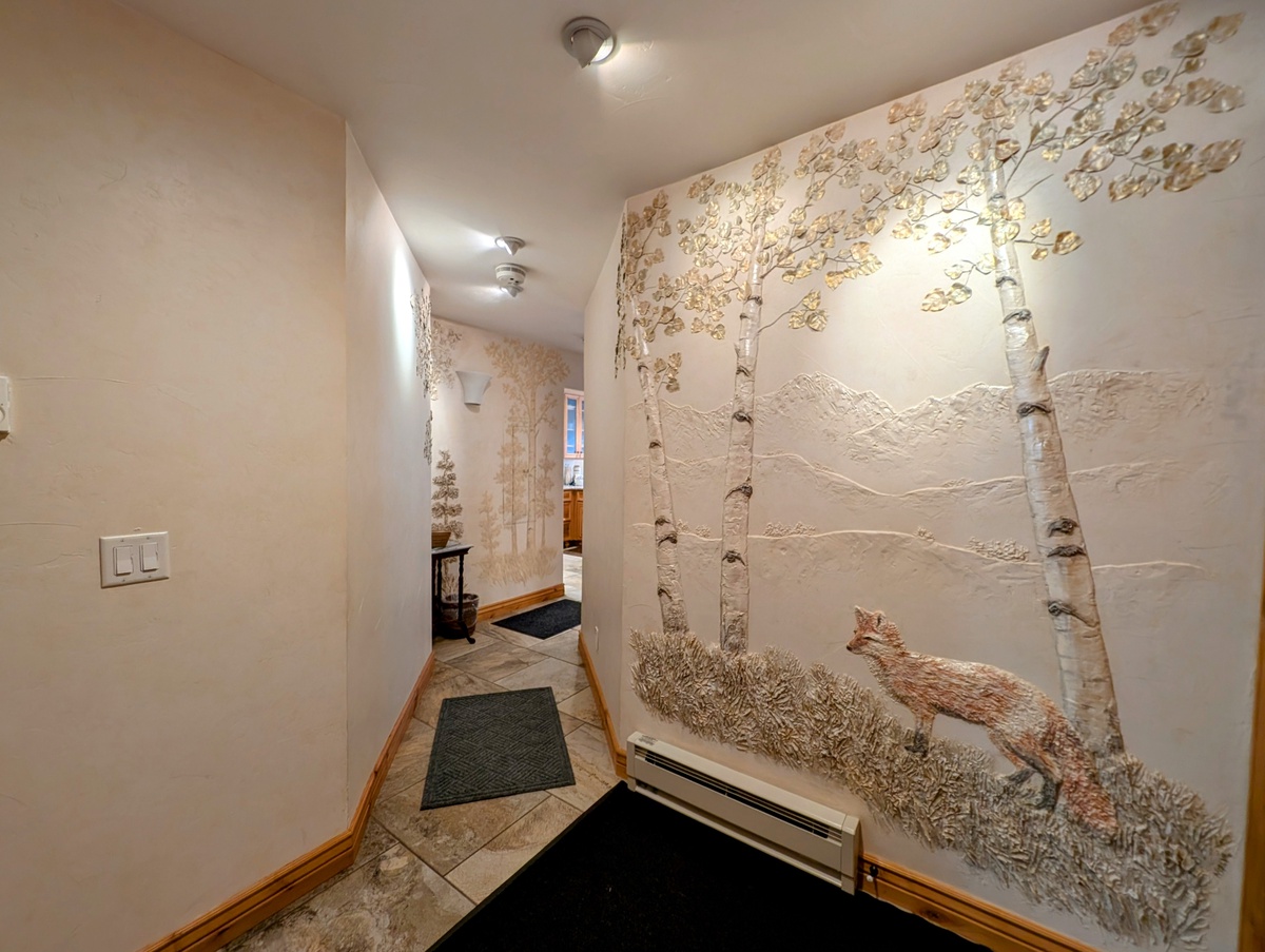 We have stayed at many different condo facilities in the past. I do a lot of research prior to booking in order to accommodate our family of 5. This place has everything-even lots of good pots & pans and at least one good knife (which says a lot because most rental condos do not)!??? Plenty of sleeping accommodations for 2 adults and 3 school aged children, choice of coffee pot vs French press, full kitchen, salt/pepper, coffee/filters and a few other spices to get you by until you shop for yourselves, TONS of extra bedding, traditional board games like yatzee and Uno, sleds, and a locker in the hallway for our ski/snowboard gear! HUMIDIFIERS TOO! They’ve thought of everything! It IS a minor hike to the lift but still closer than most who have to park in the lots nearby. We kept our boots overnight at the Mountain House for $11 a day (ask at the window for a bin) so our kids didn’t have to walk to and from ski school every day in their ski boots. Worth every penny. Ski school will also keep the kids’ skis over night in their shed if your children are returning the next day. If not, no worries! There are public, large wheeled Radio Flyer wagons all around the resort for lugging gear or children to and fro. The indoor hot tub/sauna/pool is about 20 steps from this condo! Easy and convenient after a day on the slopes! We had such a great week! Would definitely stay here again!