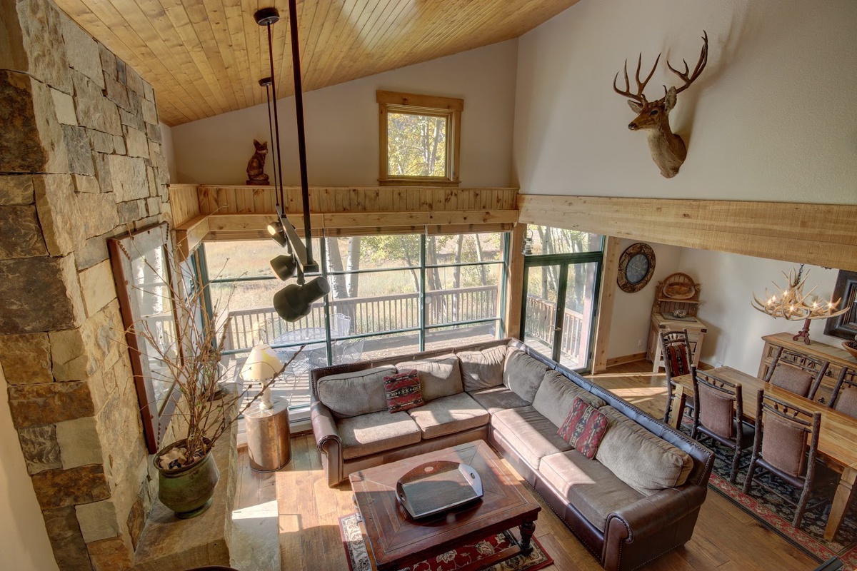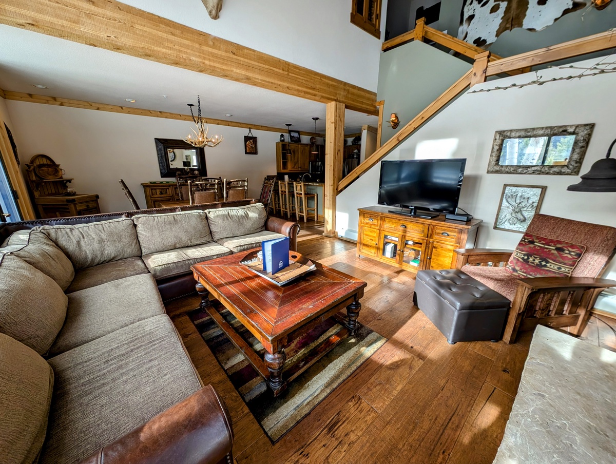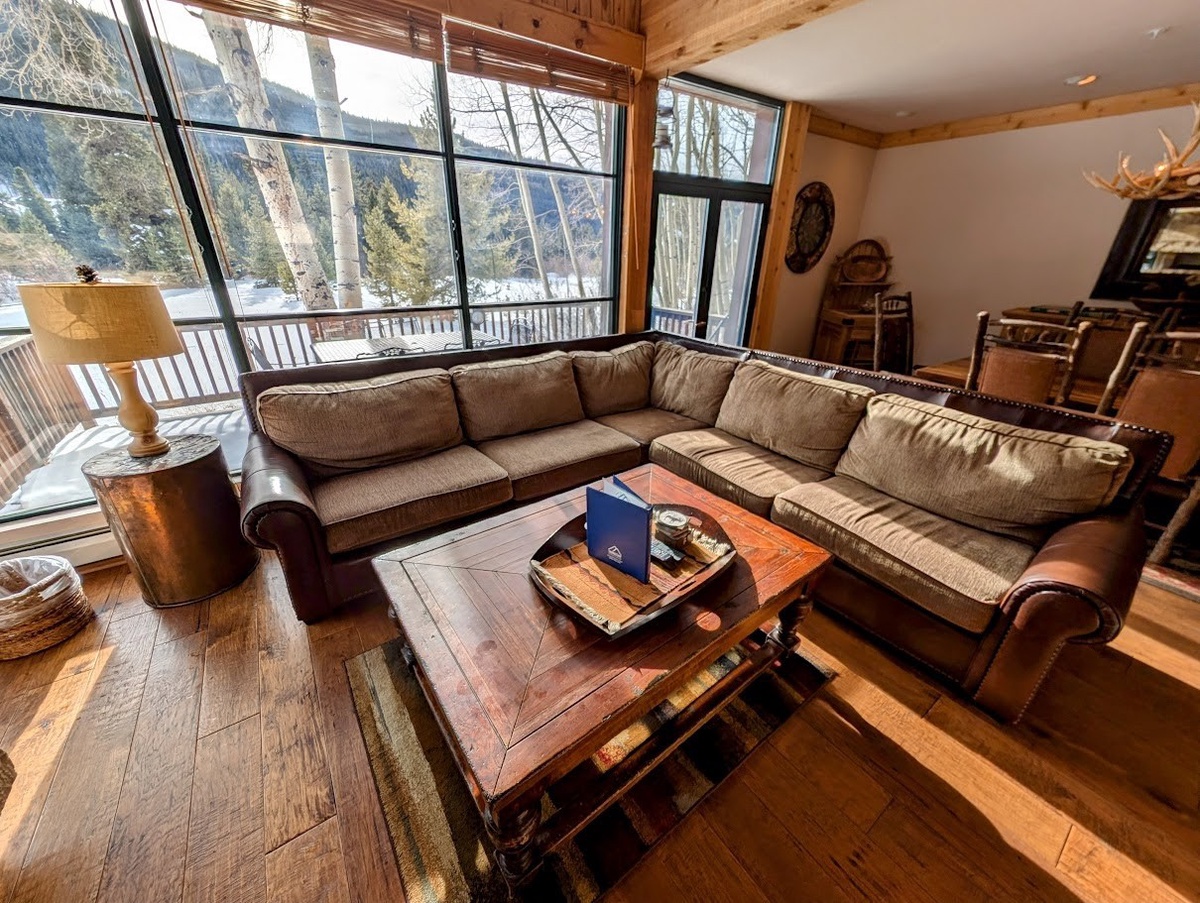 Inside, this townhome is beautifully decorated with comfortable furnishings and tasteful decor. The large windows allow natural light to flood the space and provide stunning views of the surrounding mountains. The open-concept living and dining area is the perfect place to relax with family and friends after a long day of skiing or hiking. Gather around the warm fireplace or cozy up on the comfortable sofa and enjoy some time together at the end of a busy day in the mountains.