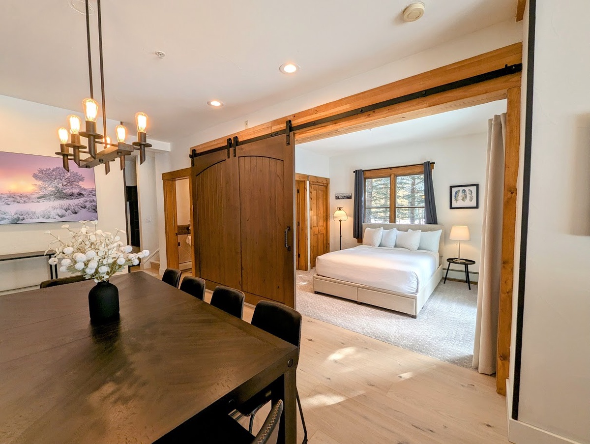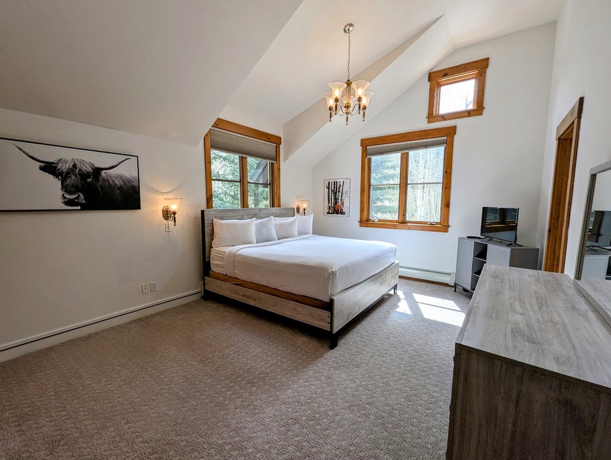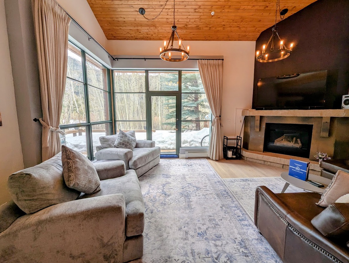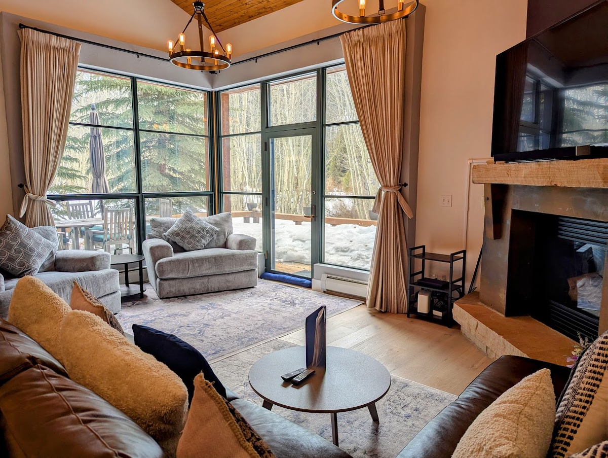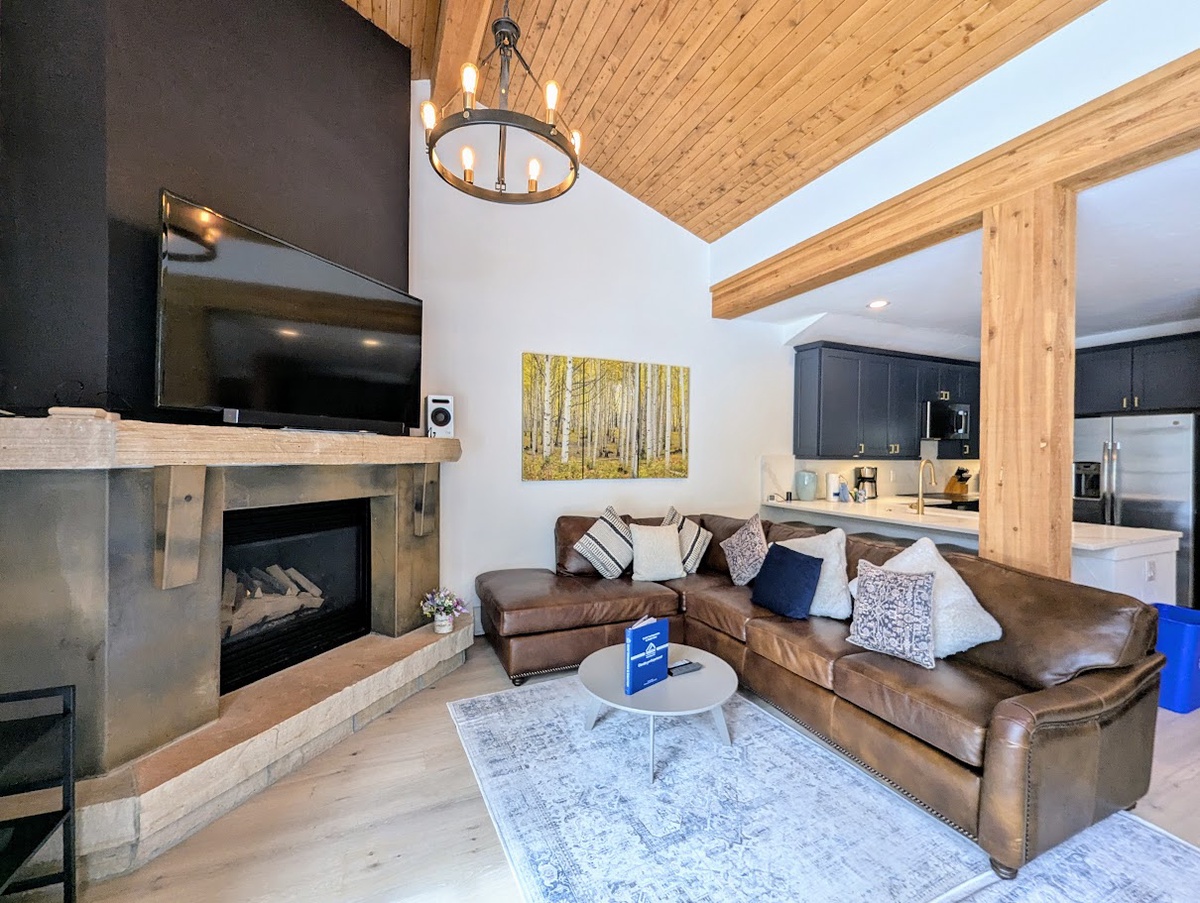 Inside, the townhome showcases a masterful design with an open-concept layout that maximizes space and natural light. The living area features large windows that flood the space with Colorado's natural beauty, creating a cozy haven to unwind after a day of mountain adventures. Plush furnishings and tasteful decor add a touch of sophistication, ensuring you feel at home in this mountain retreat.
