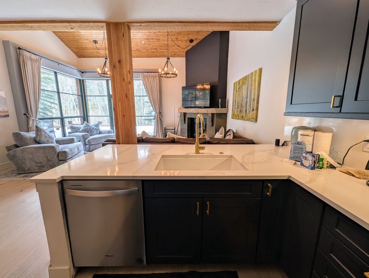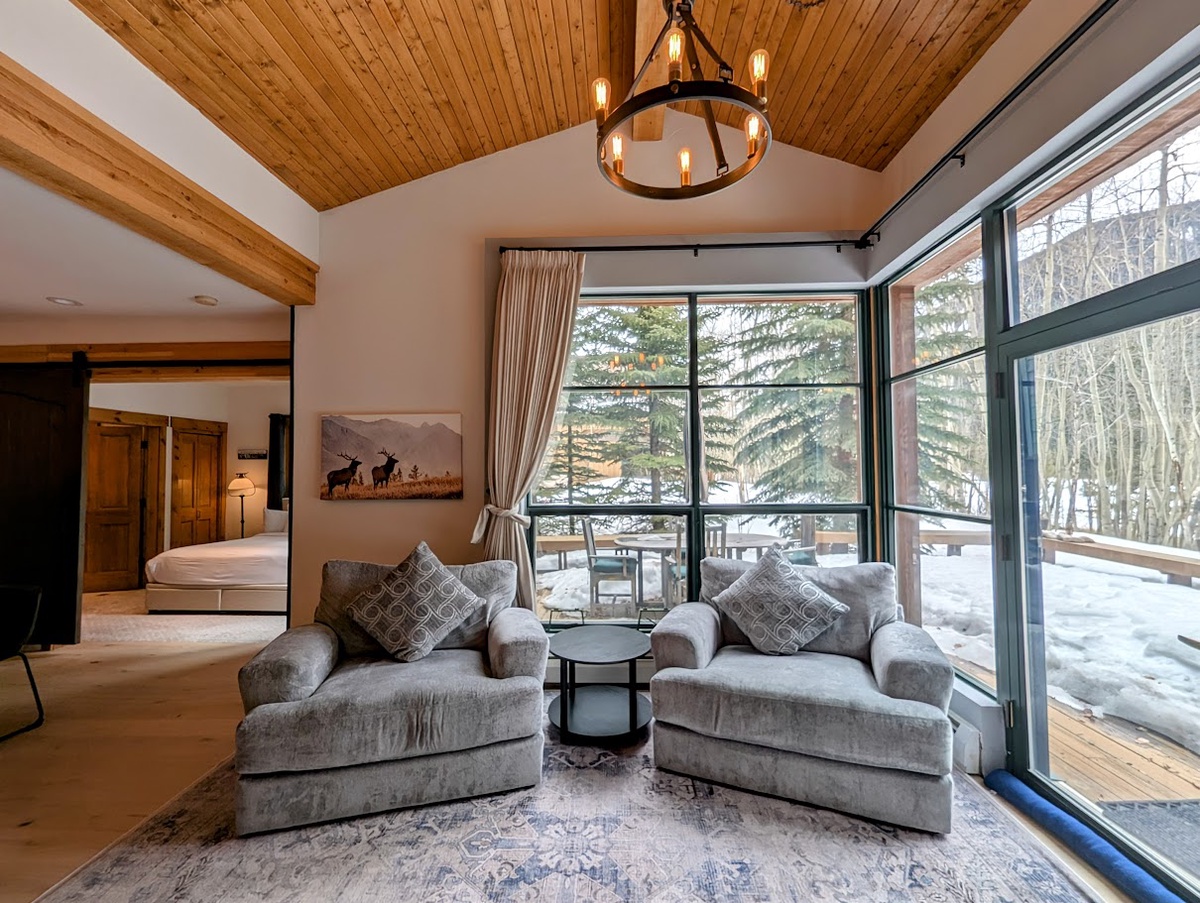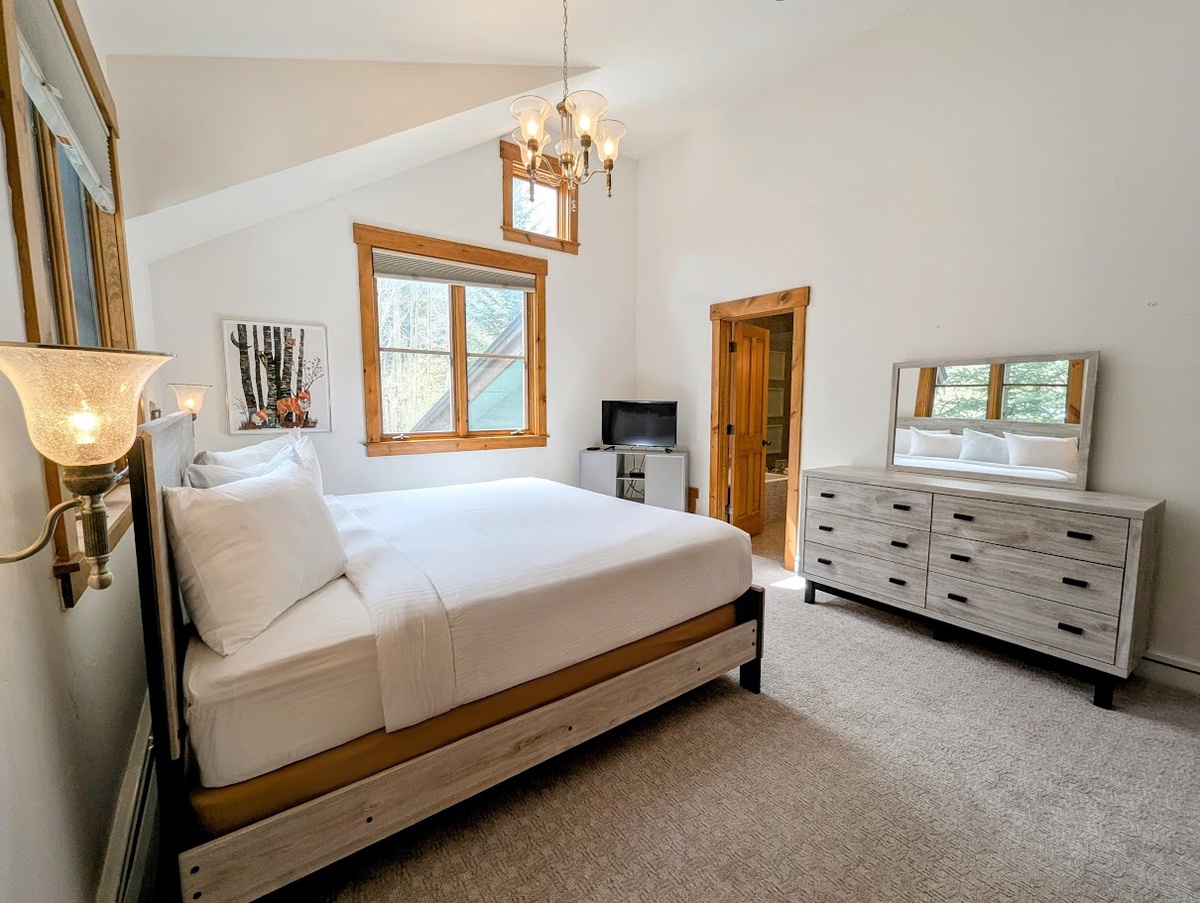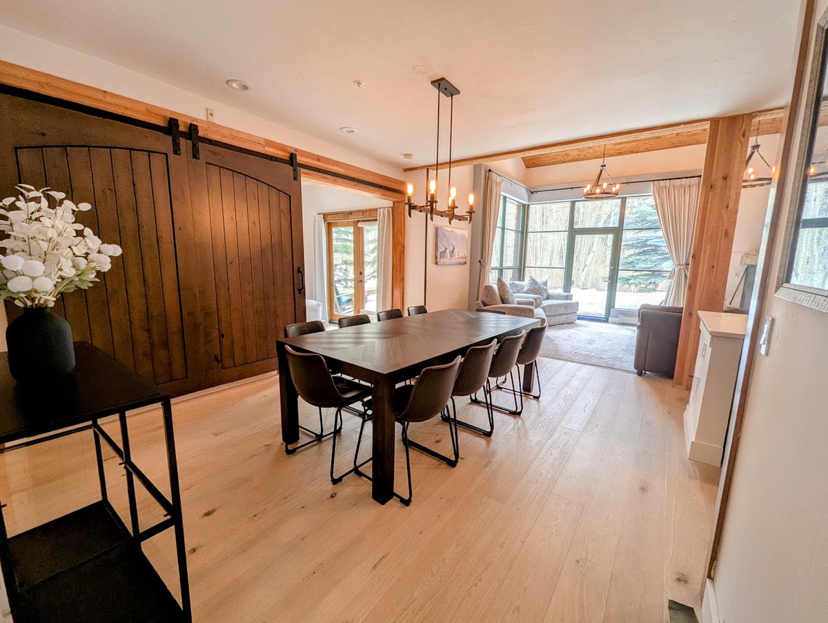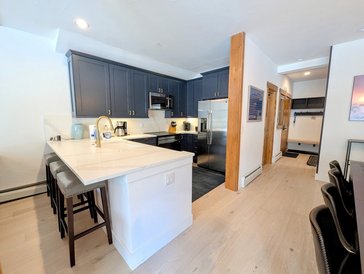 Inside, the townhome showcases a masterful design with an open-concept layout that maximizes space and natural light. The living area features large windows that flood the space with Colorado's natural beauty, creating a cozy haven to unwind after a day of mountain adventures. Plush furnishings and tasteful decor add a touch of sophistication, ensuring you feel at home in this mountain retreat.