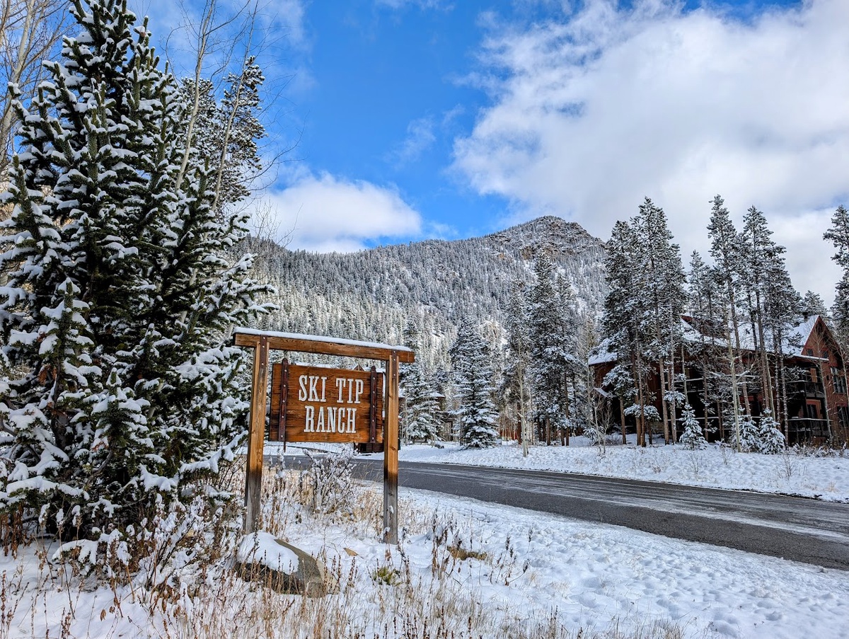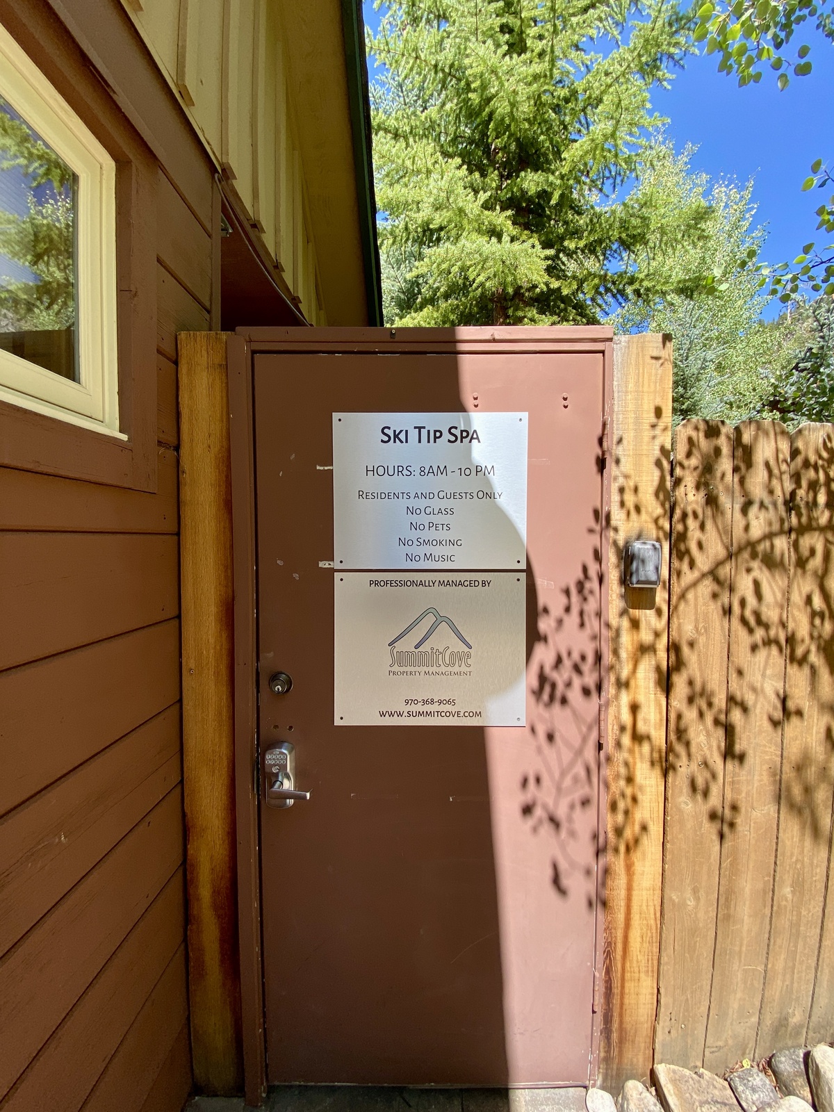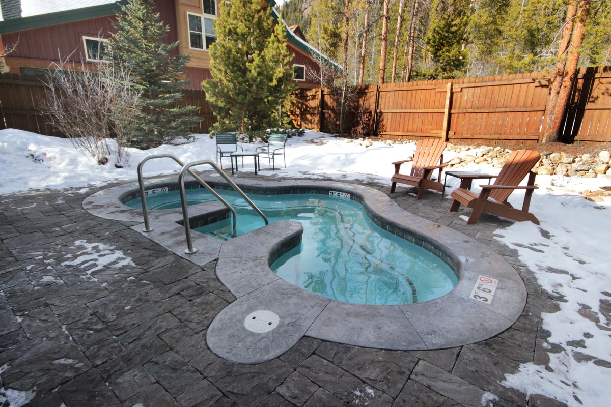 The Ski Tip Ranch complex also features a community hot tub area, where you can relax and unwind while soaking in stunning mountain views after a day of skiing or snowshoeing.