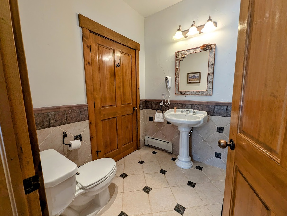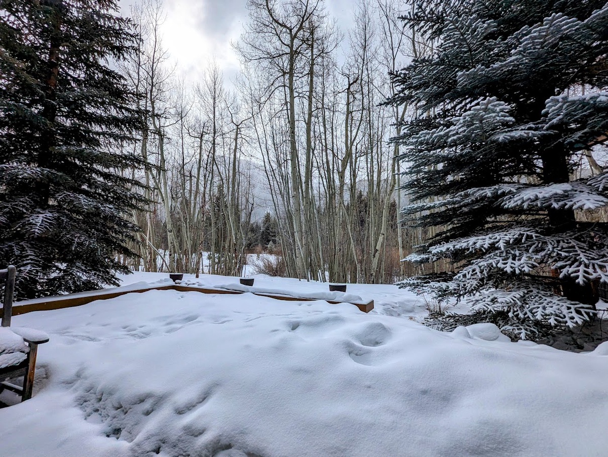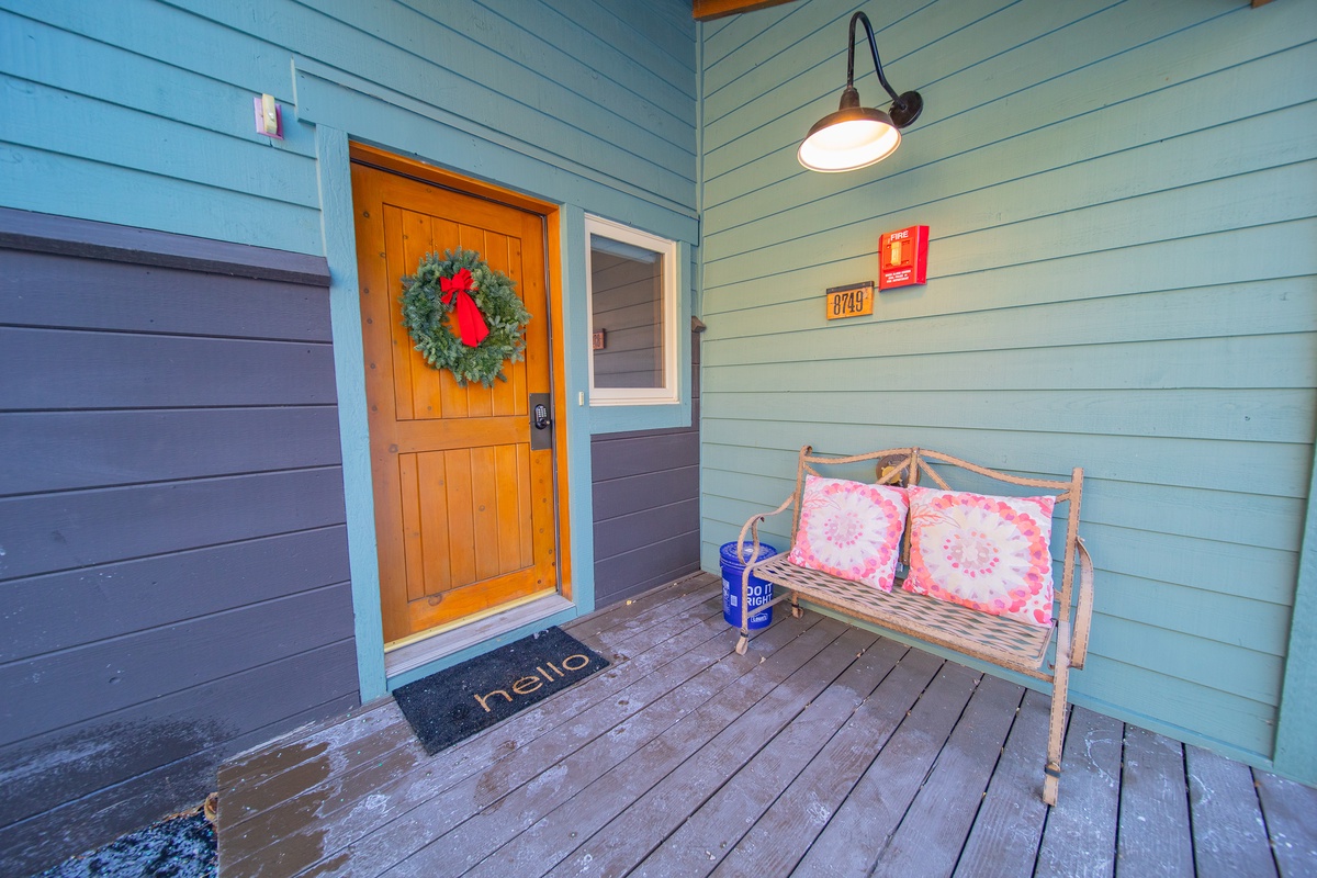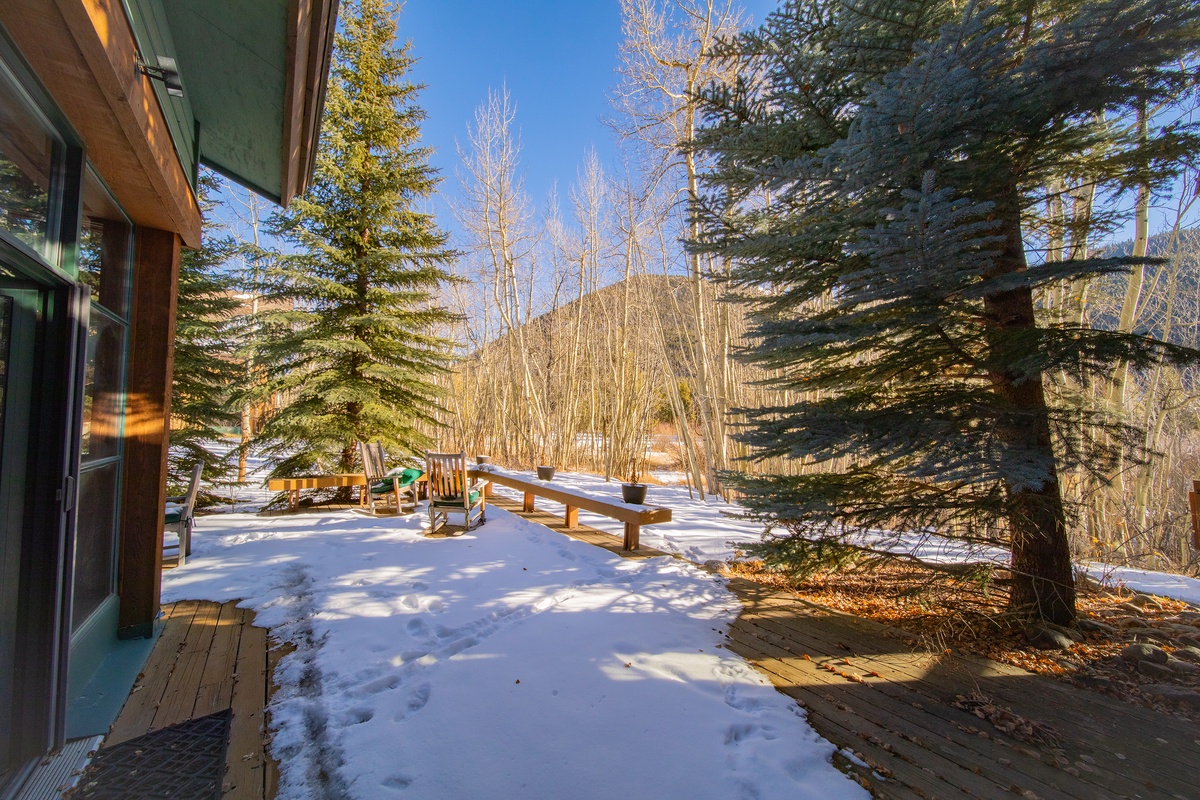The Ski Tip Ranch complex also features a community hot tub area, where you can relax and unwind while soaking in stunning mountain views after a day of skiing or snowshoeing.