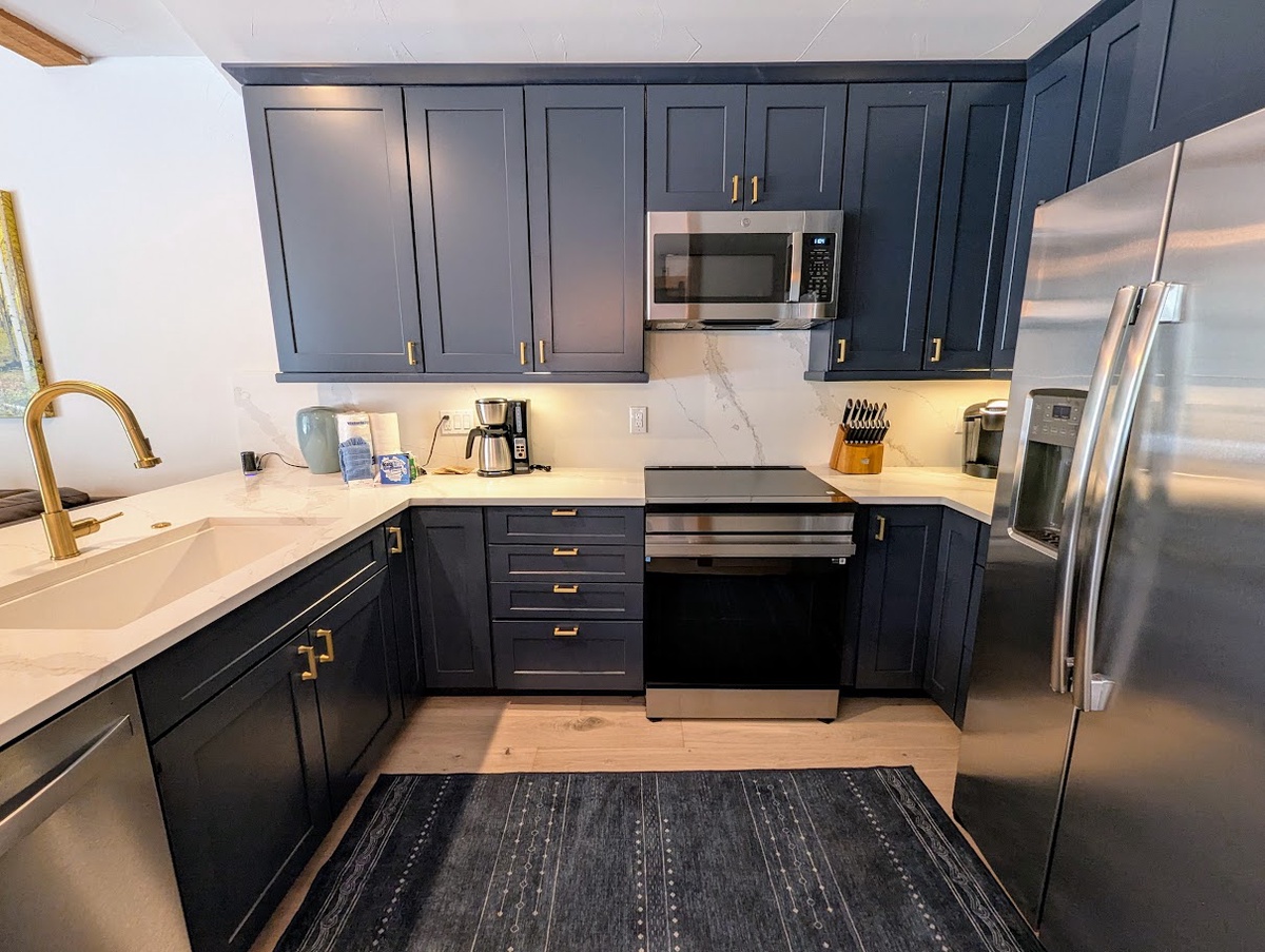 The fully equipped kitchen is a chef's delight, boasting modern appliances, ample counter space, and everything needed to prepare delicious meals for family and friends. Whether you're cooking up a hearty breakfast before hitting the slopes or hosting a dinner party, this kitchen inspires culinary creativity. Adjacent to the kitchen, a large dining table invites gatherings for home-cooked meals or evening games.