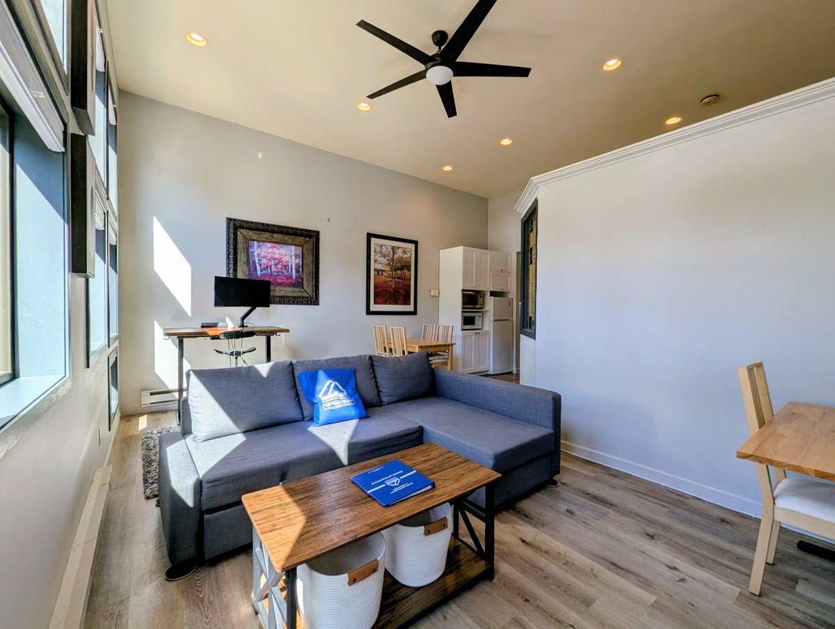 The condo’s functional layout is designed for maximum enjoyment and ease of use. The kitchenette offers a full-size fridge, two-burner stovetop, microwave oven, and more. Providing everything you need to prepare meals, from quick ski-day breakfasts to family dinners. When it’s time to rest, a private bedroom offers a quiet sanctuary. The modern bathroom has also been refreshed with contemporary finishes, ensuring a clean and comfortable start and end to your day.