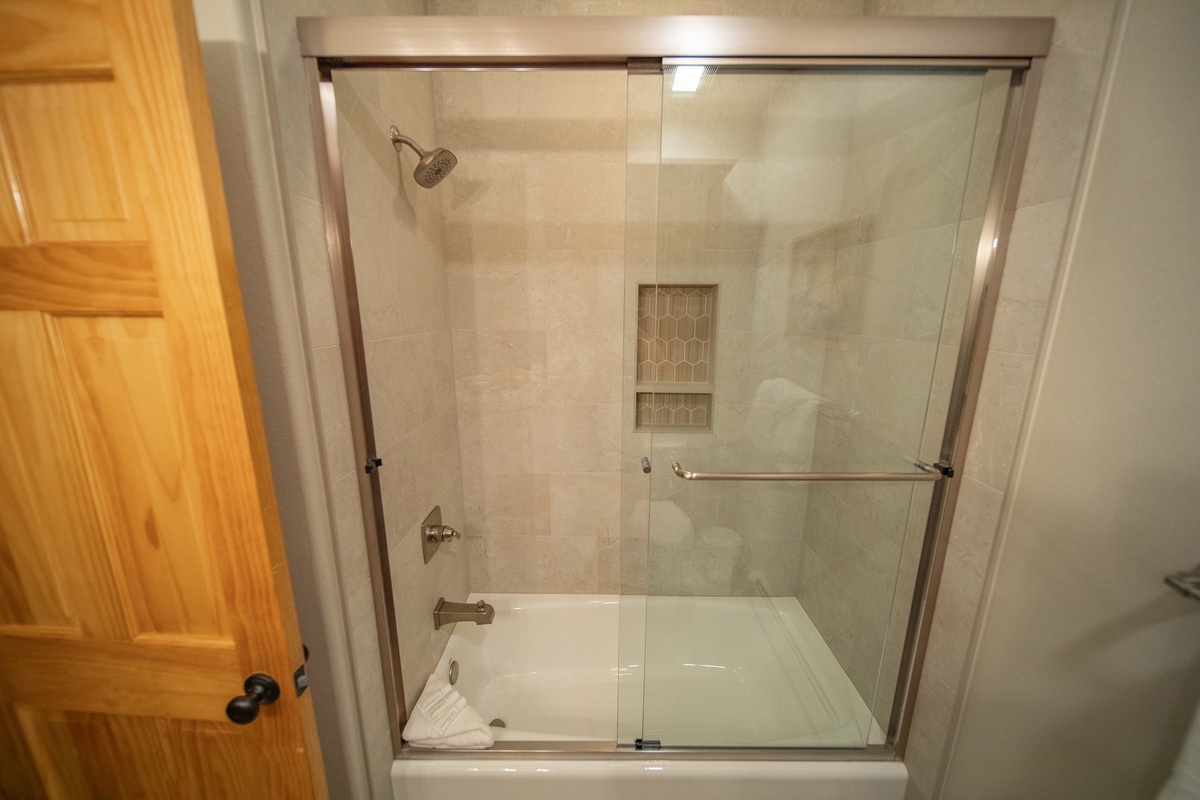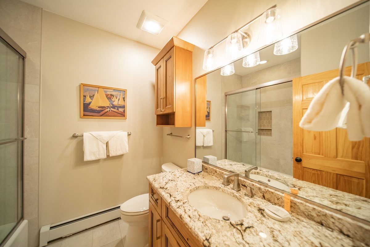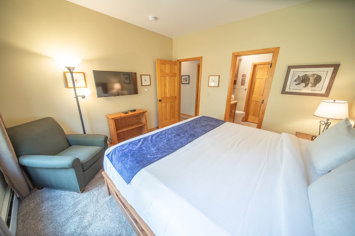 Head down the hallway and you'll find yourself in your private oasis. The first bedroom welcomes you with a plush bed and plenty of pillows, perfect to rest your head after an adventurous day. This bedroom also has a flat-screen tv and an attached bath for your privacy. The second bedroom is equally inviting, complete with its own set of comfortable bedding and furniture.