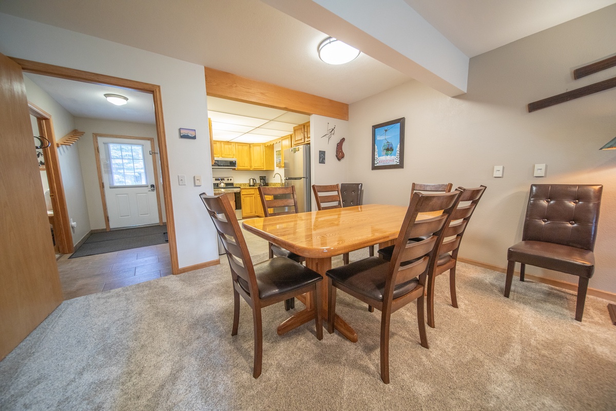 You'll find the fully equipped kitchen a joy to use, complete with modern appliances, ample counter space, and all the essentials for preparing meals. Whether brewing morning coffee or cooking a gourmet dinner, this kitchen is sure to inspire your culinary endeavors. The adjacent dining room comfortably seats 6, ideal for group meals or game nights.