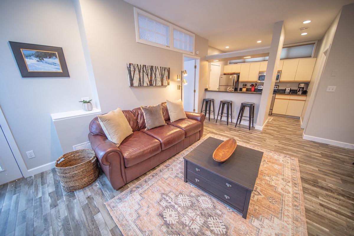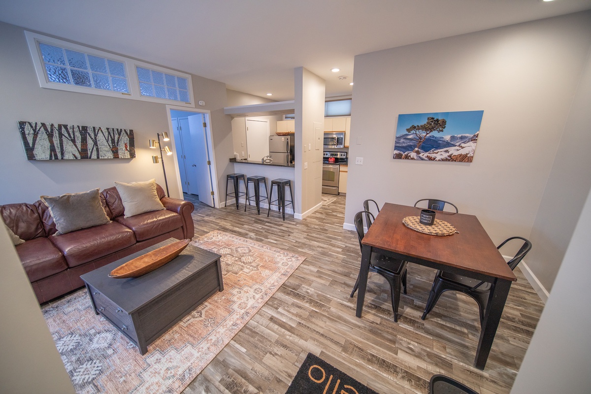 Step inside this well-appointed townhome and feel instantly at ease. The interior exudes warmth and coziness, featuring tasteful mountain-inspired decor and a thoughtfully designed layout. The open-plan living area is a social haven, combining a comfortable seating area, a dining table for four, and a fully equipped kitchen. This space encourages relaxation and connection, creating a welcoming atmosphere for unwinding after an adventurous day on the slopes.