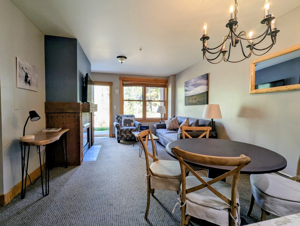 Step inside to a world of welcoming warmth accentuated by tasteful décor, high-quality furnishings, and thoughtful amenities. The open-plan living area is filled with natural light pouring in from the large windows, illuminating a space designed for relaxation and socializing. A fully-equipped kitchen lets you whip up meals with ease, while the inviting lounge area, complete with a cozy fireplace, invites you to unwind with a book or enjoy a movie night on the large flat-screen TV.