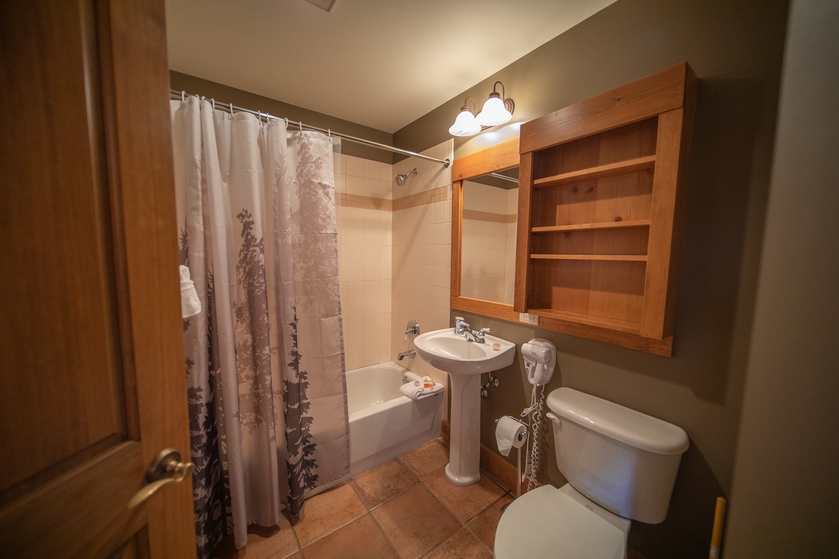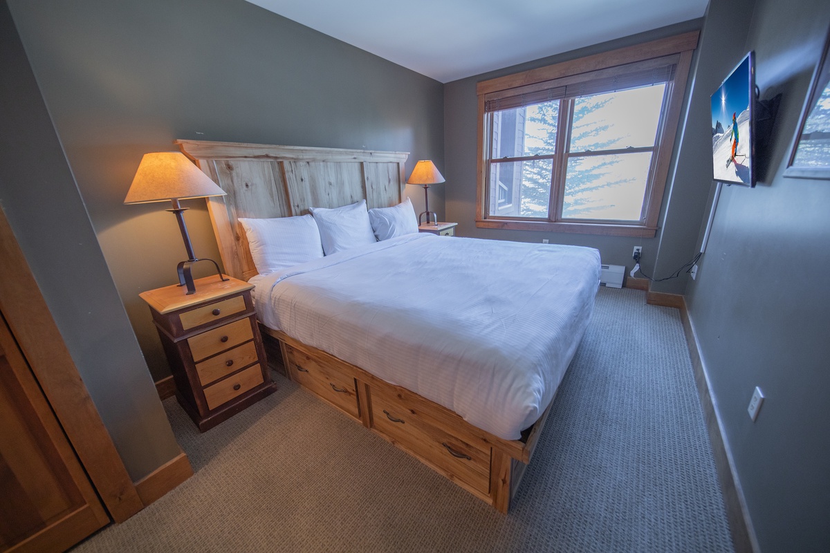 Each of the two bedrooms serves as a peaceful retreat. Comfortable and spacious, they offer the perfect sanctuary to unwind after an exhilarating day of mountain activities. Sophisticated furnishings, soft lighting, and crisp linens add a touch of luxury to your stay. Two modern bathrooms will ensure plenty of space to get ready for your day's adventure.