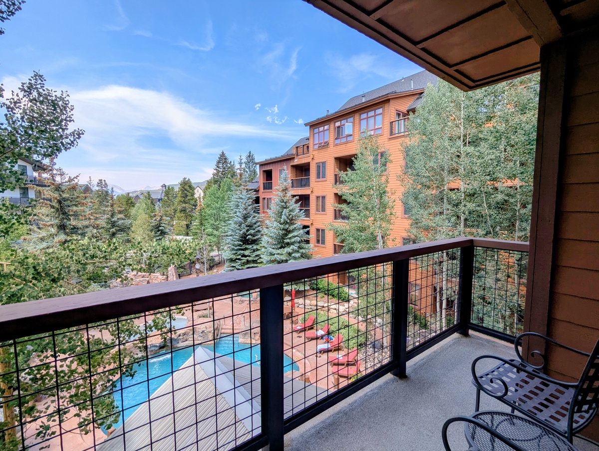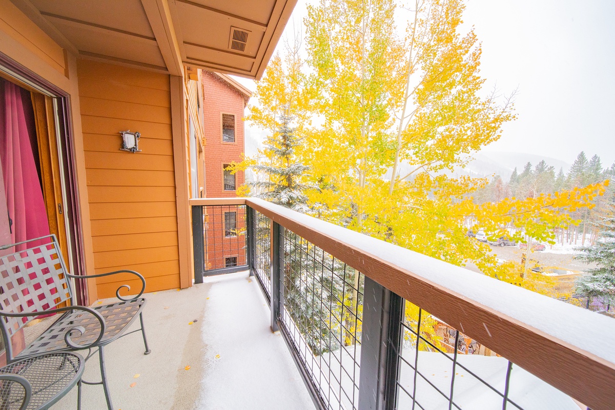 Step outside onto the private balcony for a breath of crisp mountain air. The view stretches across the evergreen expanses, punctuated by the awe-inspiring beauty of the Colorado Rockies. Outdoor chairs await for you to sip wine for apres ski or warming cups of morning coffee, as the picturesque mountain scene unfolds before you.