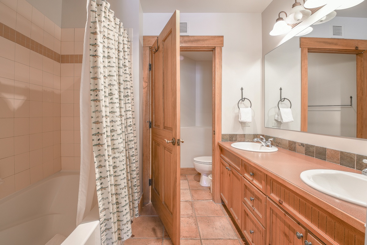 The condo offers two beautifully designed bedrooms, ensuring serene rest for all guests. The rooms boast a delightful blend of comfort and style, exuding a relaxing retreat atmosphere. Whether you want to catch some rest after a long day outdoors or read a book in tranquility, the bedrooms cater to your needs. The condo also features two bathrooms, outfitted with all the modern conveniences, contributing to a hassle-free stay.