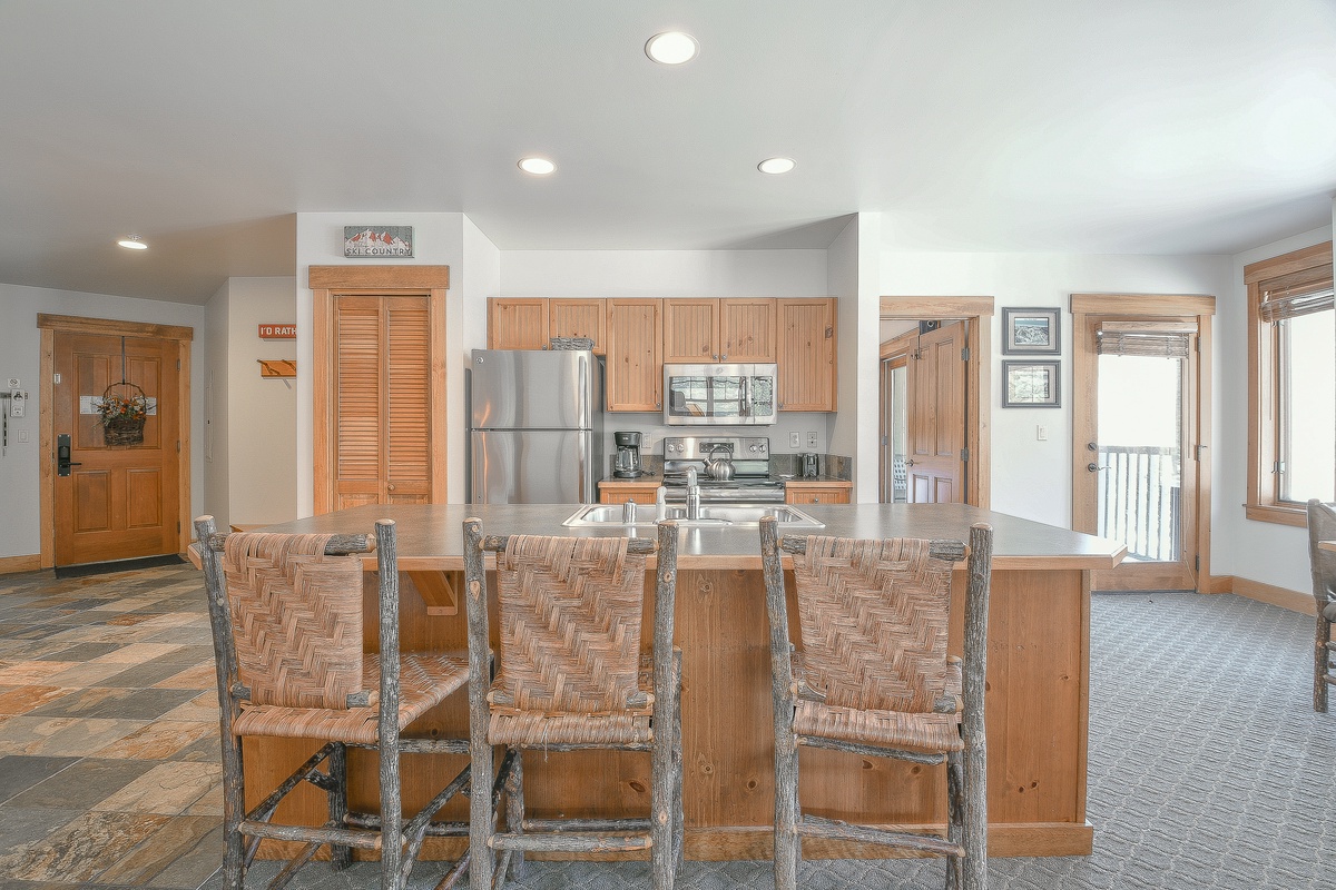 This prime location makes it an idyllic vacation choice, offering not only fantastic accommodations but also direct proximity to world-class ski slopes. Step outside, and within a short stroll, you'll be ready to carve your way down the mountain's beautiful powdered trails.
