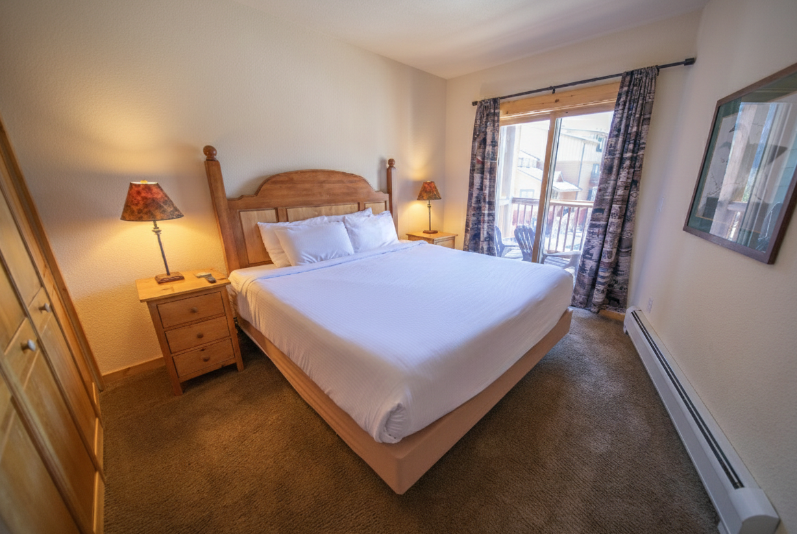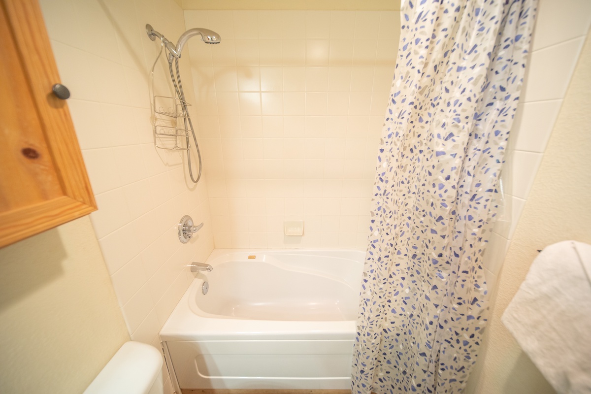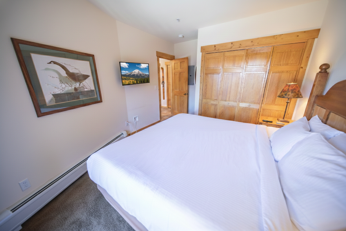 The bedroom is the perfect retreat after a day of skiing or exploring the mountain trails. Cozy up in bed and enjoy some quiet time with a good book. The bathroom boasts a tub/shower combo, perfect for soothing sore muscles after a day on the slopes or hiking in the Rockies.