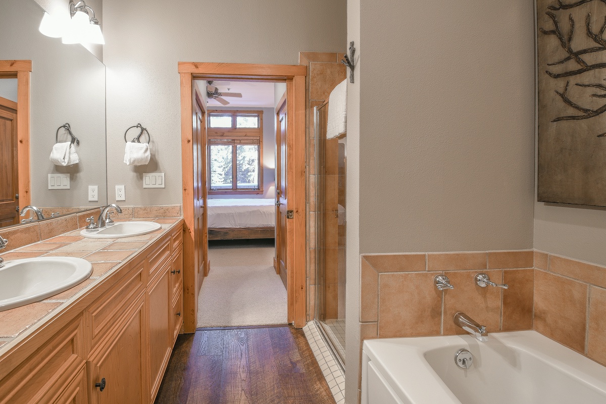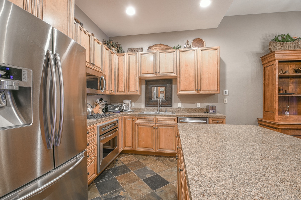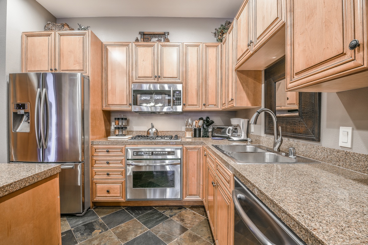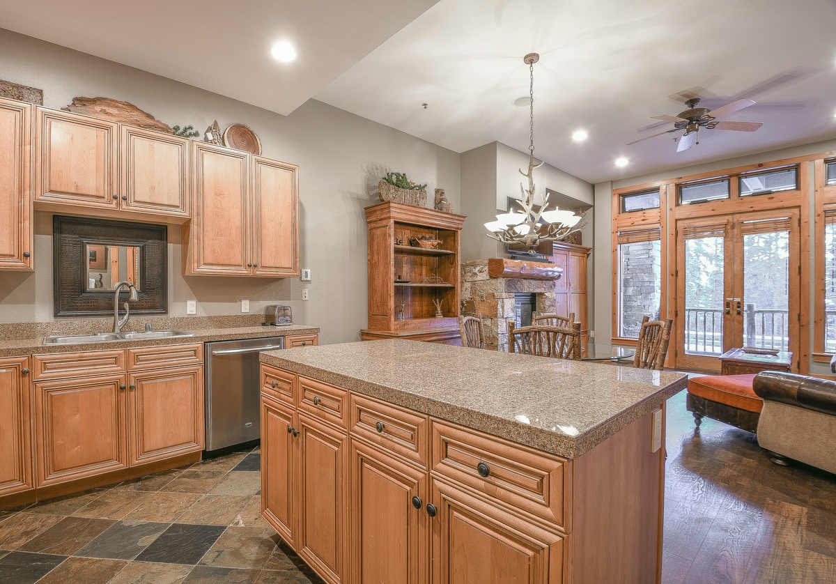A stay here means savoring the impressive alpine views showcased through floor-to-ceiling windows that flood the interiors with natural light. The living room, complete with plush seating and a gas fireplace, invites guests to unwind after an exhilarating day on the slopes. For the culinary inclined, the kitchen comes fully equipped with stainless steel appliances and sleek granite countertops, providing the perfect stage to craft delightful home-cooked meals.