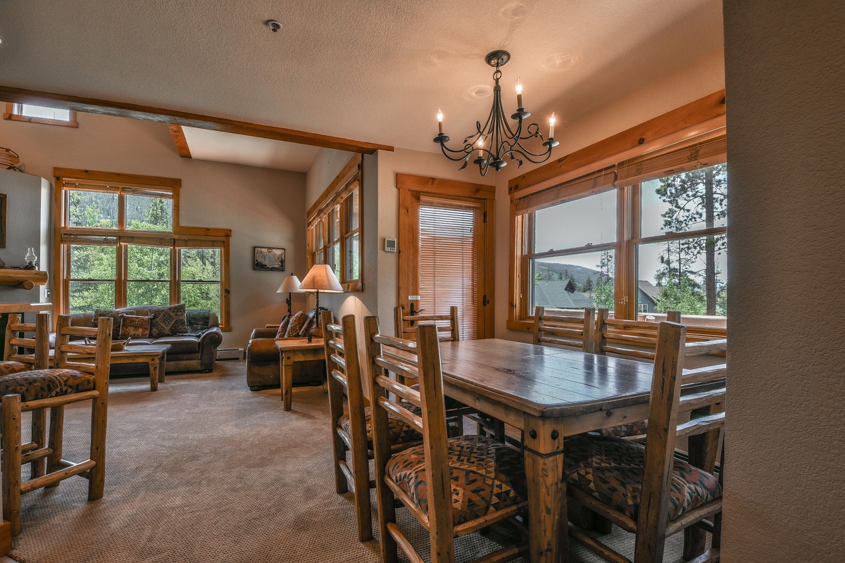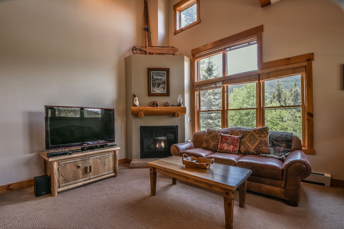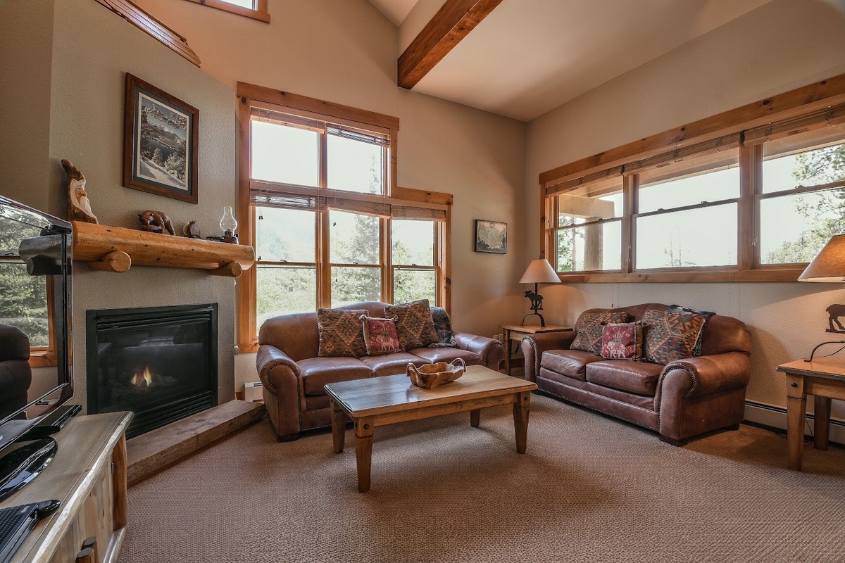 The living room in Trapper's Crossing 8753 is spacious, with great views and plenty of natural light streaming in from the large windows. The comfortable seating arrangements provide a warm and inviting atmosphere to relax and unwind after a day out exploring the mountains. The beautifully appointed fireplace adds to the ambiance of the room, and the flat-screen TV ensures that entertainment is never far away. Please note * there is no sleeper sofa in this property.