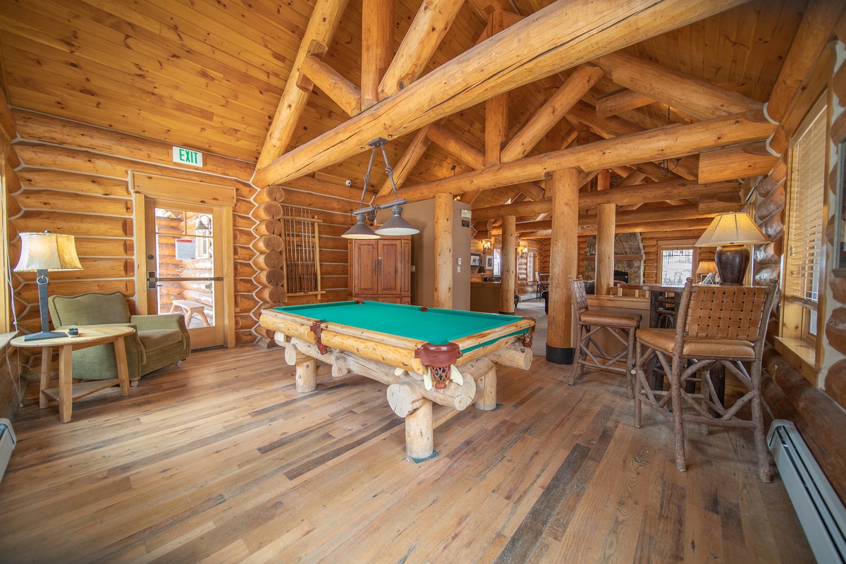 Guests can enjoy Minnie's Cabin amenities at Settlers Creek Townhomes, including an outdoor heated pool, hot tubs, outdoor grilling area, and a clubhouse with a pool table and ample lounging space to socialize.
